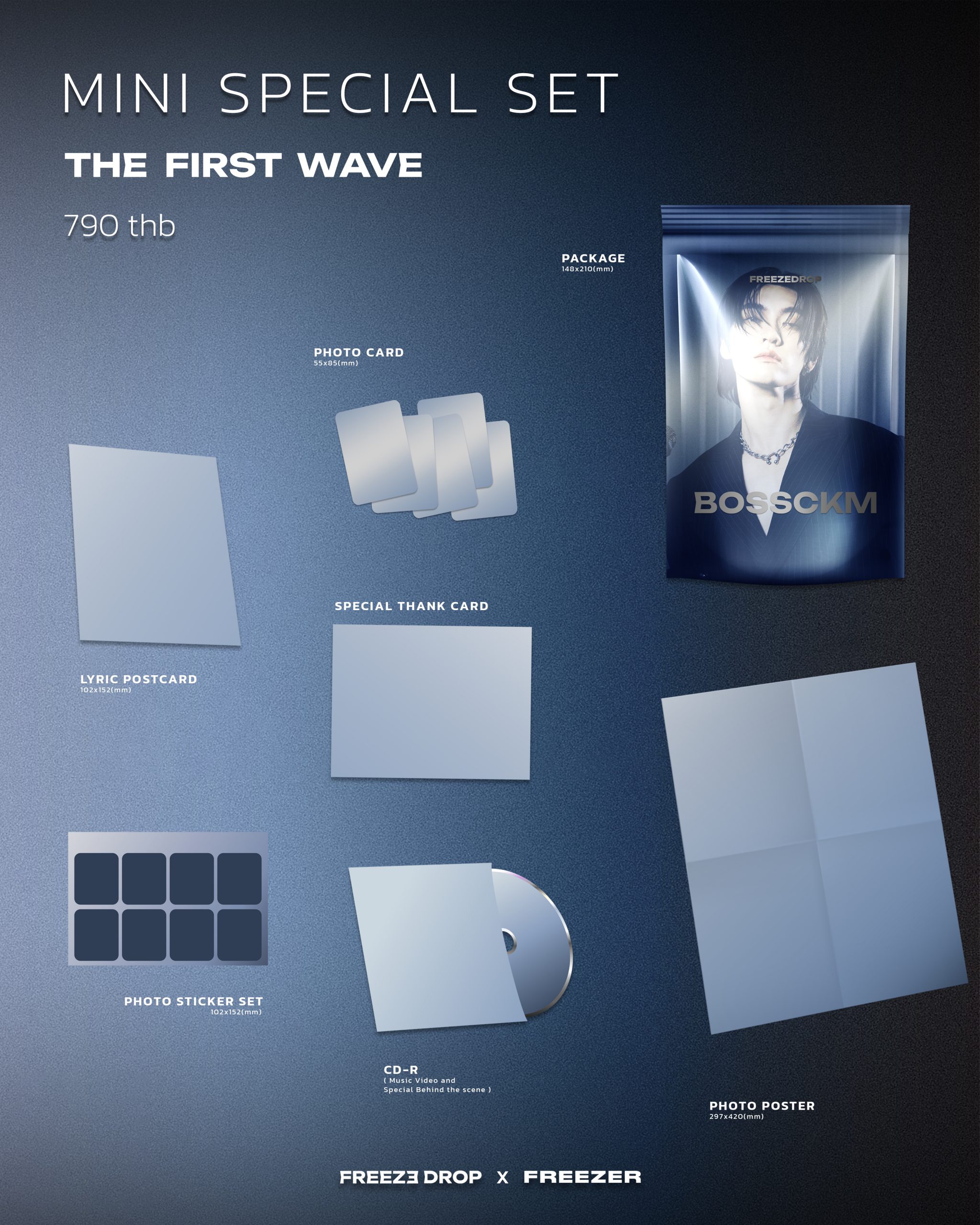 - 5 photocards (5,5 x 8,5 cm)