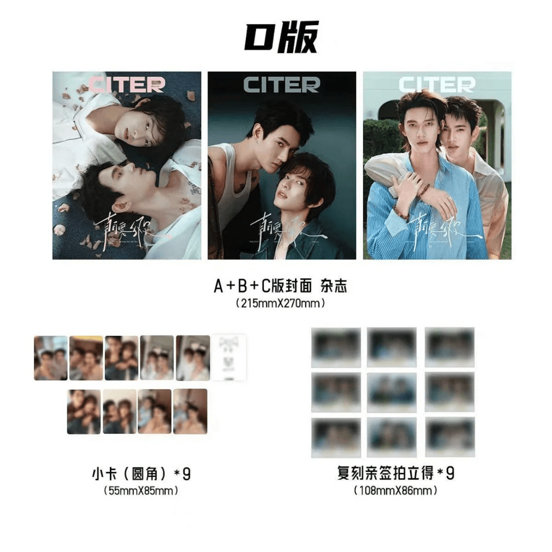 Version D : 3 magazines (cover A, B et C) + 9 polaroids + 9 photocards