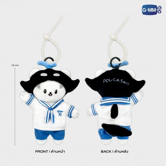 Porte‑clé I AM POLCASAN chantant, habillé d’une adorable tenue de marin. Il contient la chanson complète “I am POLCASAN” ainsi que plusieurs répliques en anglais. Une simple pression suffit pour entendre la voix joyeuse de Polcasan, capable de faire fondre n’importe quel cœur.
